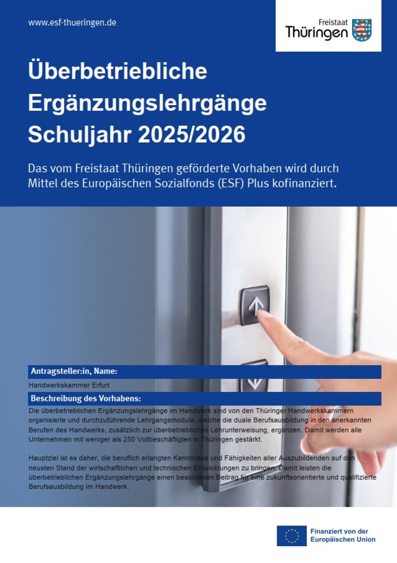 Die Handwerkskammer Erfurt stellt die Anträge auf Gewährung der genannten Zuschüsse bei den jeweiligen Institutionen.